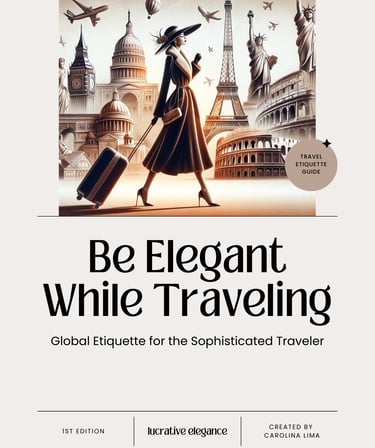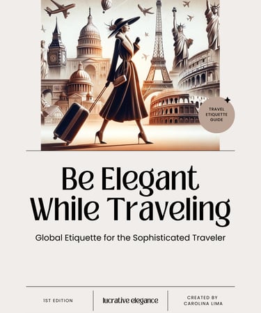 Discover global elegance for the sophisticated traveler with "Be Elegant While Traveling - Global Etiquette for the Sophisticated Traveler." This exclusive e-book offers tips and guidance on etiquette and behavior across various cultures around the world. Learn to travel with elegance, respecting and understanding the social norms of each destination, and how to make a lasting impression anywhere in the world while standing out for your class and refinement. Become a sophisticated and well-prepared traveler anywhere in the world!